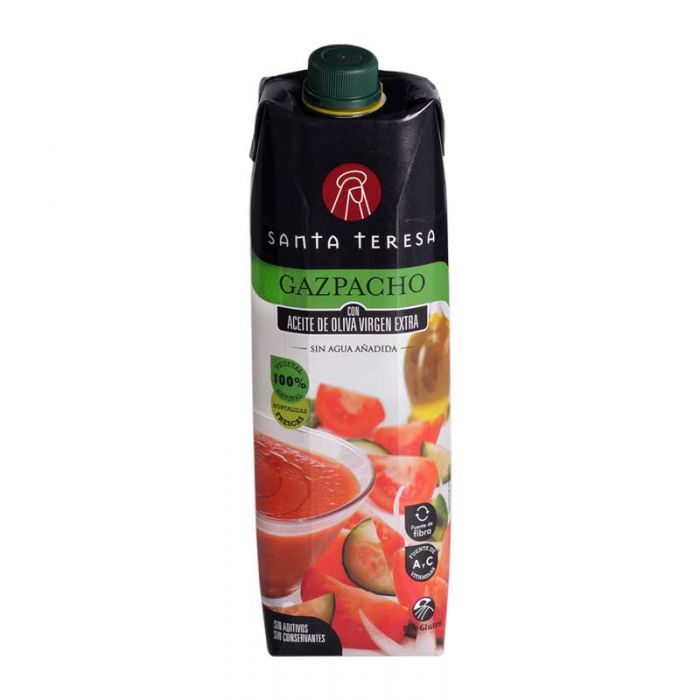 Otro de los gazpachos mejor valorados por la OCU es el gazpacho Santa Teresa. Aunque no es el de los baratos también tiene cuatro estrellas. Probablemente será porque es el más parecido a un gazpacho natural en su textura y aroma. Además, es el que más porcentaje de verduras y hortalizas contiene, casi un 96% más un 3% de aceite de oliva virgen extra.