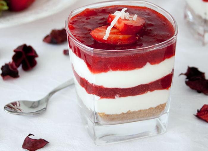 Si quieres recetas para preparar rápido, los vasitos de queso, galletas y mermelada son una gran opción. Para prepararlo solo necesitas 250 gramos de queso crema; un yogur griego; tres claras de huevo; cuatro fresas troceadas; cuatro galletas tipo «Digestive»; azúcar glas y mermelada de fresa.