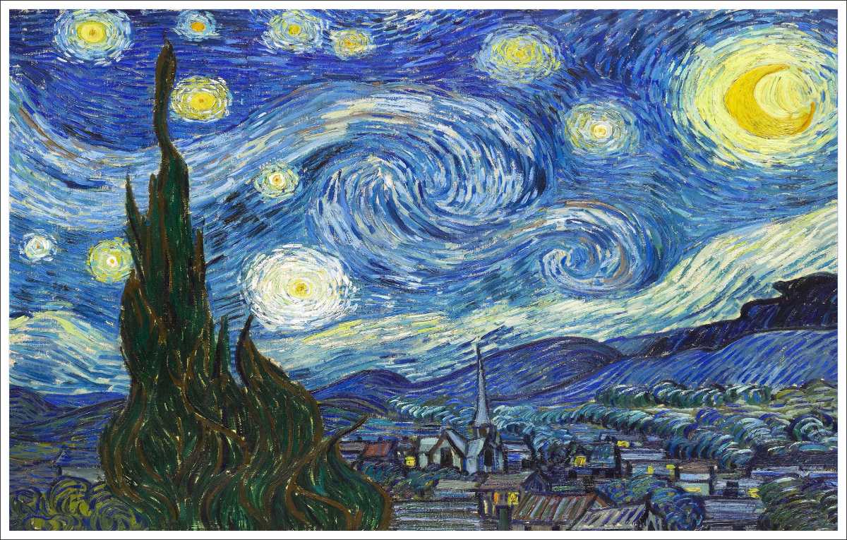 La técnica es algo realmente fascinante, fue usado el impacto, que es utilizada por el pintor para demostrar una noche inquieta y vibrante haciendo juego en medio del contraste amarillo intenso, con los empastes azules. Esta representación está en el Museo de Arte Moderno de Nueva York.