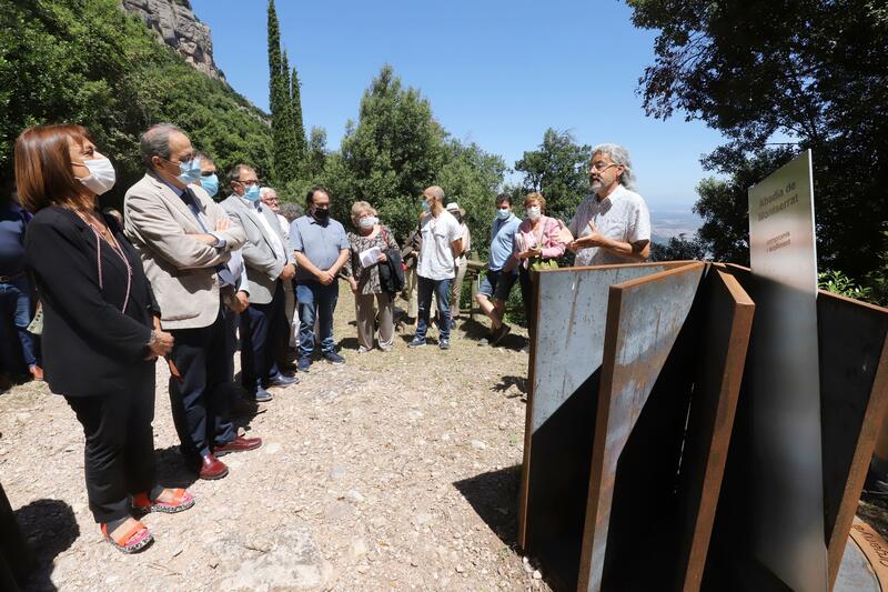 En todos los puntos se levantará un monolito del escultor Ramon Maria Jounou que simboliza un momento o concepto clave para el catalán, y por eso Torra ha visitado el ya instalado en el camino de los Degotalls de Montserrat.