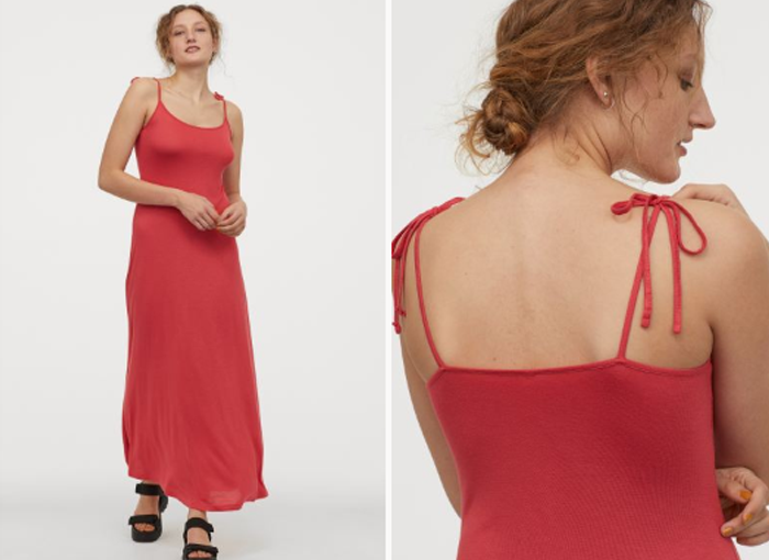 Este vestido largo de punto es otra de las grandes oportunidades que puedes encontrar entre las ofertas actuales de la tienda. Está fabricado en viscosa con suave caída y tirantes finos de anudar y sin forrar.