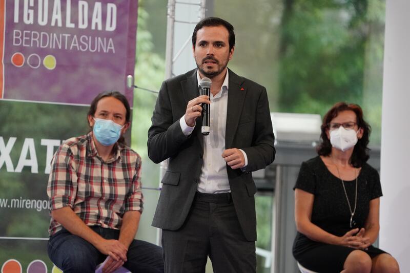 Garzón ha intervenido en un acto de campaña celebrado en el Palacio Euskalduna de Bilbao, en el que también han participado el secretario general de Podemos, vicepresidente segundo del Gobierno y ministro de Derechos Sociales y para la Agenda 2030, Pablo Iglesias, y la candidata a Lehendakari por Elkarrekin Podemos-IU, Miren Gorrotxategi.