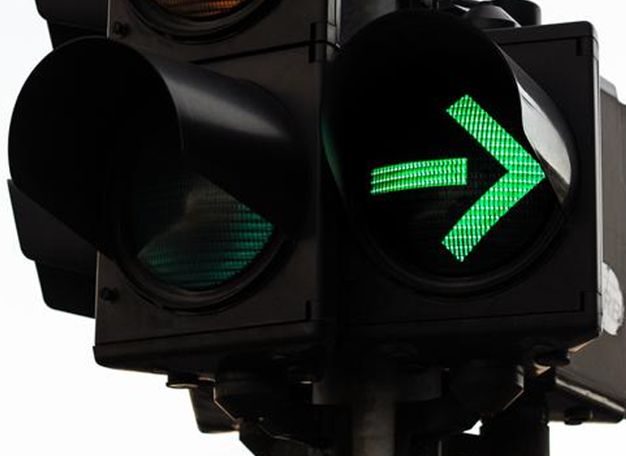 7SEMÁFORO EN ROJO CON FLECHA VERDE ILUMINADA