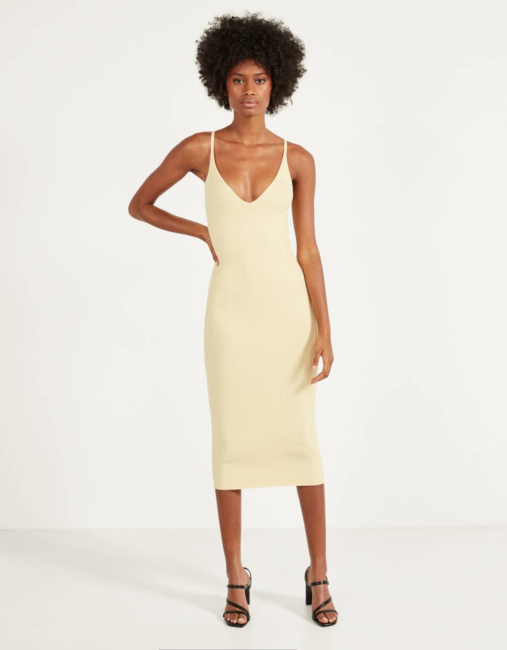 Sin embargo, un vestido bien confeccionado de Bershka será el componente perfecto para ese evento donde tienes planificado participar, ya que este midi de tirantes es ese estilo que toda mujer quiere tener consigo. Se trata de un corte que va a realzar tu figura, hará que te veas mucho, más delgada, espigada, y ese rostro formal que causará la envidia de todas. Las tallas que están disponibles son XS, S, M y L. Su precio es de 17,99 euros, no te lo pierdas porque vas a tener vestido por un largo tiempo.