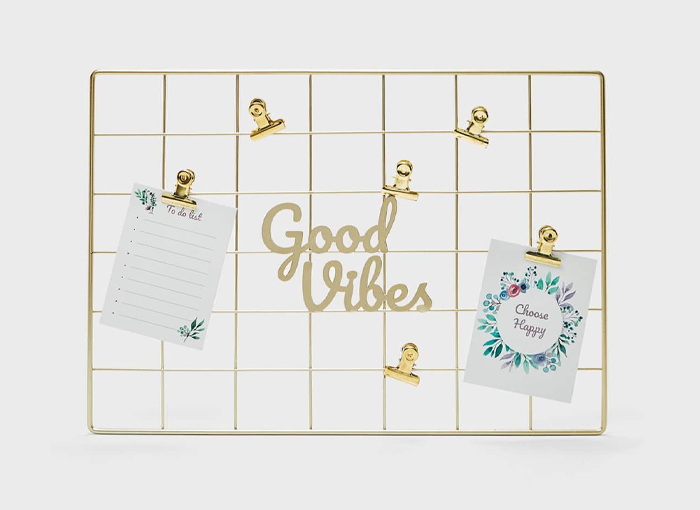 En su diseño incorpora en la parte central unas letras con el texto Good Vibes, que significa «Buenas vibraciones». Es una buena forma de decorar cualquier habitación al mismo tiempo que se trata de un elemento muy funcional.