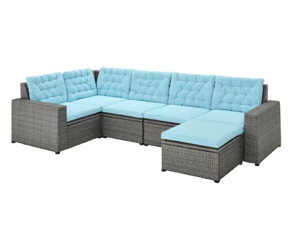 A través de este diseño, se presenta un estampado que es azul, no posee detalles, por lo que pasa a ser un sofá elegante, y hace un contraste con el espacio abierto de una manera fantástica. Las fundas de cojín han sido teñidas con un procedimiento llamado «dope dyed», que reduce el consumo de agua y pigmentos a la vez que mejora la solidez de los colores en comparación con las técnicas de tintura tradicionales. Al llevar un tratamiento para fijar el color, el cojín conserva un aspecto impecable durante más tiempo. Este sofá SOLLERÖN puede ser tuyo por un precio de 894 euros.