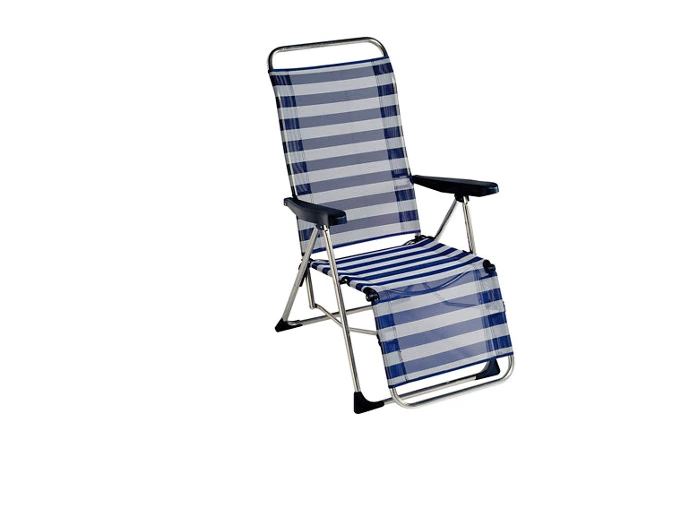 Viene con soporte de aluminio y fibreline de rayas azules y blancas en el asiento. No conforme con esto posee reposabrazos. Queda demostrado que Leroy Merlin siempre piensa en la experiencia de sus clientes, pues siempre quiere verlos feliz, y qué felicidad y placer genera estar echado en un sillón elegante, novedoso, y a la moda. No te vas a querer quedarte fuera de este accesorio imprescindible en las vacaciones. Tiene un precio de 51, 95 euros.