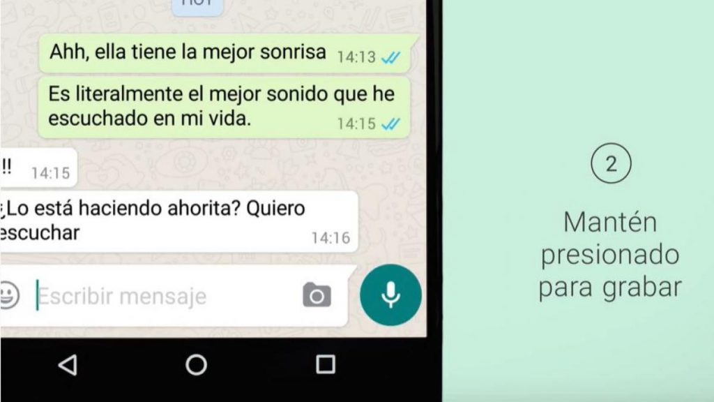 Es la forma usual de usar la voz. Es tan fácil como entrar en la aplicación, mantener pulsado el ícono de micrófono. Ese que está junto a la caja en la que se introduce el texto y enviar el audio. Tras dejar de pulsar el mensaje se envía. Es así de fácil, pero ojo porque a más de uno le ha dado un disgusto.