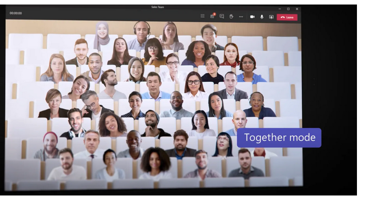 Así es como se llama esta nueva característica de Microsoft Teams, ‘Mode Together’, o lo que es lo mismo, todos juntos, en castellano. Lo que hace es crear un avatar virtual de cada persona recortando todo el fondo. Una vez tiene el avatar lo coloca en un espacio virtual específicamente diseñado. Te ponderemos un ejemplo. Te puede situar en una cafetería o incluso en una sala de prensa.
