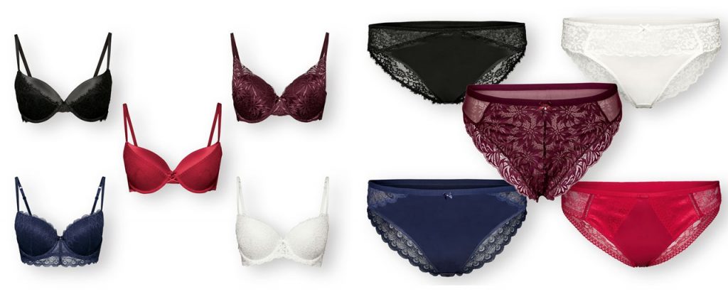 ¿Sabías que la ropa interior de encaje es hoy tendencia? Gracias a los encajes la mujer se siente más femenina. Además, en Lidl puedes crearte el pack a tu medida, ya que puedes comprar los sujetadores (en los cinco colores existentes) con las braguitas que más te gusten: tipo culotte, braga brasileña o tanga, todos ellos disponibles en los mismos colores y materiales que los sujetadores para crear los packs de ropa interior femenina de encaje personalizados. En los modelos azul y rojo, las braguitas incluyen un lazo muy mono y sensual. Toda la gama está confeccionada con elastano para asegurar un ajuste perfecto al cuerpo.
