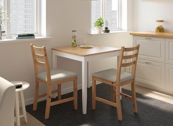 La mesa de Ikea Lerhamn es una mesa de pequeño tamaño que tiene la gran ventaja de que se puede utilizar en cualquier espacio, por muy reducido que sea el mismo. Por lo tanto, es perfecta para quienes quieran maximizar el espacio en su hogar o rengan un comedor de reducidas dimensiones.