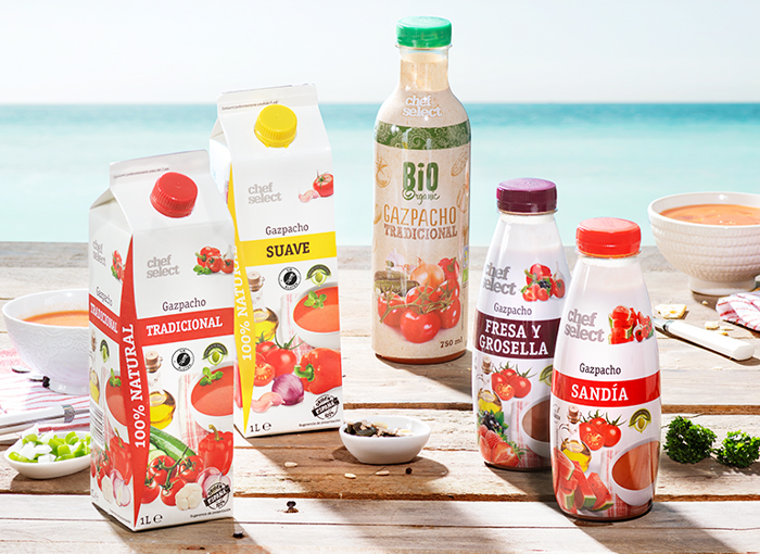 Desde el pasado 8 de junio, Lidl vende en sus supermercados diferentes variedades de gazpacho 100% original, entre las cuales cabe destacar una opción revolucionaria como el gazpacho con sandía, que es apto para celíacos e intolerantes a la lactosa. Asimismo, hay una segunda variedad similar como es el gazpacho con fresa y grosella