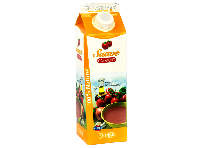 El gazpacho suave Hacendado es, como se puede deducir de su propio nombre, la opción menos intensa de las tres variantes de gazpacho que se pueden encontrar en la cadena de supermercados Mercadona.