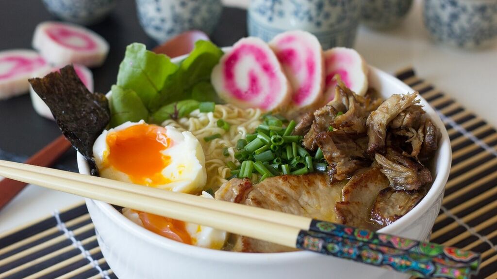 Además del sushi, otra de las bases de la comida japonesa es el ramen. En realidad, consiste en un caldo de cerdo, pollo y verduras con salsa de soja y fideos. Aunque cada región de Japón tiene su propia receta de ramen, la preparación básica consiste en distintos tipos de fideos japoneses servidos en un caldo preparado. Su preparación es relativamente sencilla, muy similar a nuestros caldos donde preparamos el líquido con la salsa del ave, a fuego lento y quitando la espuma de vez en cuando. Además, la base del ramen es la salsa kaeshi, que le da un toque y potencia el sabor. Lo servimos como un cocido, por una parte el caldo con los fideos y una cucharada de kaeshi, y luego le añadimos la carne y un huevo cocido picado en tres o cuatro partes.