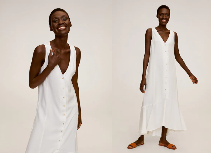 Aprovechando las rebajas de Mango, es una buena oportunidad para renovar tu armario de cara al verano con este vestido largo botones. Se encuentra a la venta por 29,99 euros, lo que supone un descuento del 25% con respecto al PVP habitual, de 39,99 euros.
