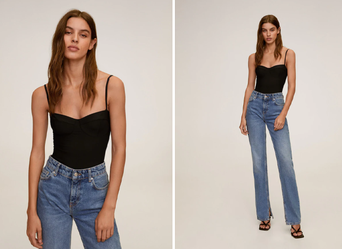 Si buscas un body para este verano por menos de 30 euros, puedes comprar este body copa aros de Mango de nueva colección. Disponible en tallas S, M y L por 29,99 euros.