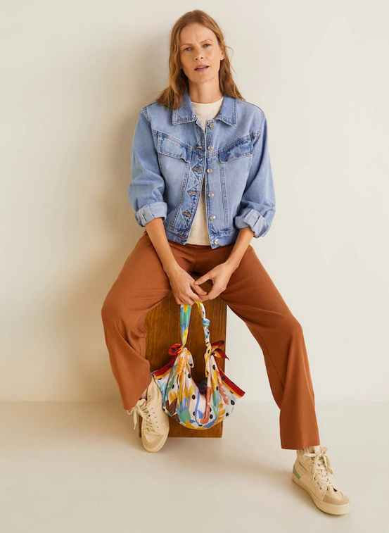 Hemos dejado para el final a la joya de la corona de los complementos de Mango que son tendencia este verano, y que, además, están muy rebajados. Se trata de este bolso pañuelo de poliester que presenta un diseño muy fresco y veraniego. Es muy cómodo en tamaño y asa, ya que es lo suficientemente corta como para que no quede ajustada en la sisa pero se pueda llevar con igual comodidad de la mano. Un bolso diferente para una mujer atrevida y alegre. ¡Y rebajado un 70%!