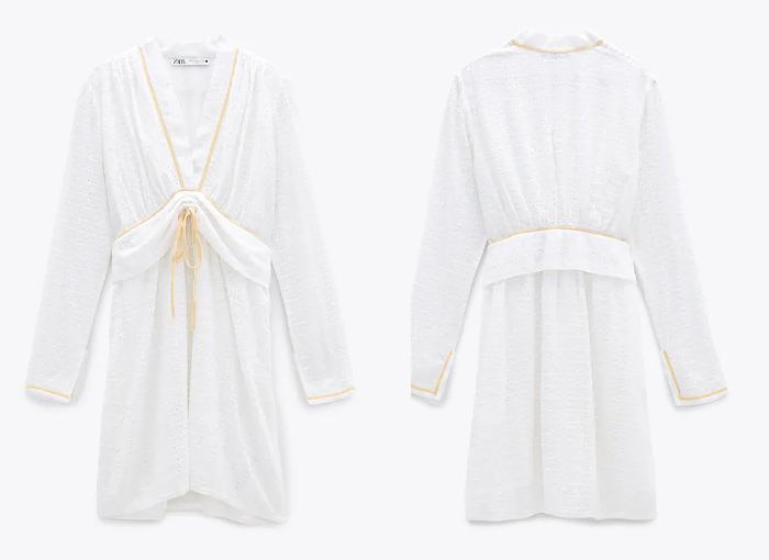 El color blanco es una tendencia habitual de cada verano. Zara por ello cuenta con diferentes prendas en las que está presente. Uno de ellos es este vestido bordado perforado Limited Edition.
