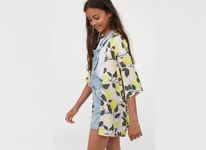 Una de las prendas más populares del verano es, sin lugar a dudas, los kimonos. En H&M puedes encontrar diferentes opciones para adaptarse a tus necesidades y preferencias. En este caso destacamos este kimono estampado de crepé con mangas tres cuartos y sin cierre.
