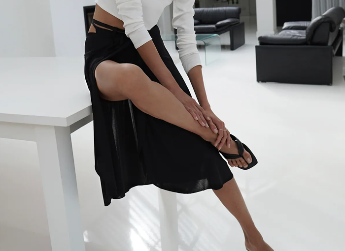 Este modelo de falda pareo de tiro alto tiene un acabado en color negro. Tienen cierre cruzado con lazada combinada a tono, estando disponibles en tallas S, M y L a un precio de 22,95 euros.