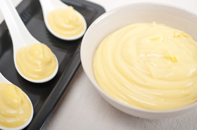 Para hacer la crema pastelera batimos el huevo con el azúcar y lo incorporamos a la leche caliente con las pieles de naranja y limón y el palo de canela. Ponemos el cazo al fuego e incorporamos la fécula de maíz y retiramos las frutas y la canela. Se irá espesando poco a poco así que debemos remover todo el rato a fuego muy lento hasta obtener una crema homogénea y sin grumos. Cuando la tenemos en su punto, la ponemos en una fuente ancha y removemos de vez en cuando para que no se forme costra en la superficie. Lo hacemos hasta que se haya enfriado. Por último, cuando esté fría, la tapamos con papel film y reservamos.