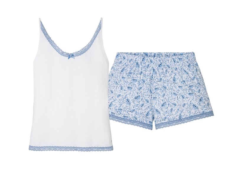 Es de color blanco con encaje, viene con una camiseta de tirantes que son ajustables y lacitos decorativa. Además, el pantalón no puede faltar, es de cintura elástica y lazo decorativo. Es importante destacar que de 100% algodón, así que tu comodidad está más que asegurada. Puedes encontrar tallas S y L por un precio de 4,99 euros. Lo cierto es que en ese instante que tengas puesto el pijama estarás a la moda, y eso es algo doblemente encantador.