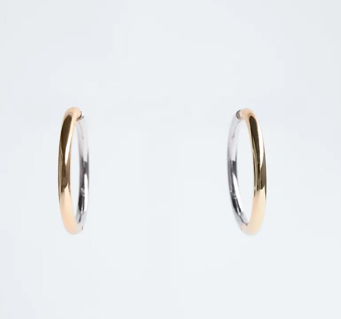 Los conseguirás a un costo de 9,95 euros. Los aros de este tipo son súper atractivos. Puedes observar esa combinación entre el dorado y plateado para que le des un nuevo aspecto tus orejas. No olvides que para ser belleza tienes que comenzar a cambiar tu look, y ese look es un compendio de elementos que cuando logras conseguir el que vaya acorde a tu cuerpo, personalidad y ocasión, serás la mejor vestida del momento, y es algo que no tiene precio, se llama felicidad, y Zara te la ofrece en bandeja de plata.