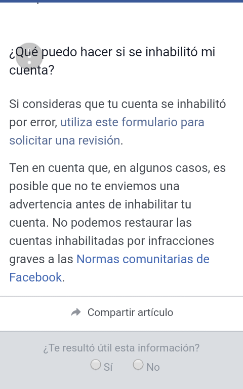 Ten en cuenta que, en algunos casos, es posible que no te envíen una advertencia antes de inhabilitar tu cuenta. Y ya avisan de que “No podemos restaurar las cuentas inhabilitadas por infracciones graves a las Normas comunitarias de Facebook”. Así que ten cuidado con la norma que infrinjas porque podrías perder toda la información que tienes en la red social.