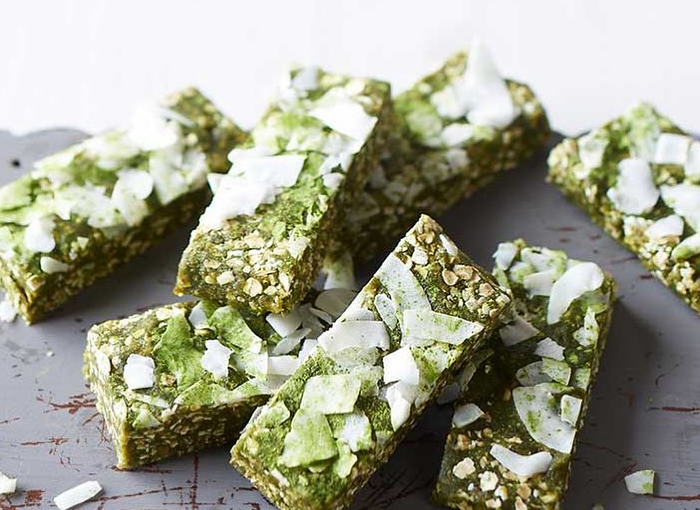 Las barras de dáctil y té matcha es otra gran opción, siendo un alimento que puedes preparar para comer en cualquier momento. Para preparar entre 8 y 10 unidades necesitas: dos cucharadas de aceite de coco; 175 gramos de dátiles deshuesados; una cucharada de extracto de vainilla; 30 gramos de semillas de lino; una cucharada de té matcha en polvo; 75 gramos de almendras; y 75 gramos de copos de avena, copos de coco y polvo de matcha.