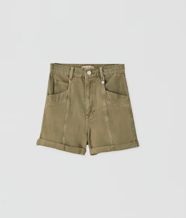 Si eres fan de los shorts durante el verano, también hay opciones ideales para ti en Pull&Bear. Por ejemplo estos con detalles de costuras delanteras y el bajo vuelto, desenfadado e informal. Lleva bolsillos (lo que siempre es un plus), y la cintura está diseñada con trabilla. El cierre es con botón y cremallera. Está disponible en tres colores: verde militar, negro y beige. Antes costaban 17,99 y ahora solamente 7,99 euros.