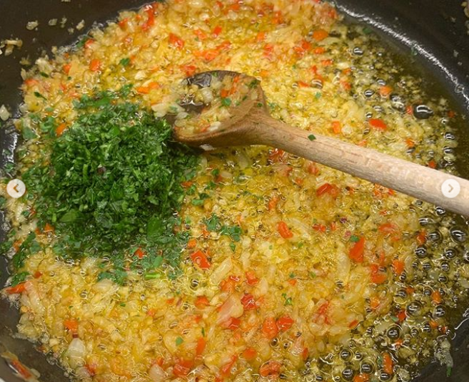 Para la salsa, cogeremos una olla bien grande introducimos 100 gramos de aceite de oliva virgen extra con 3 dientes de ajo picados, 3 cebollas rojas grandes bien picadas, 1 puerro y 2 zanahorias. Y lo picamos todo de manera muy fina, según las recomendaciones de Alberto Chicote. Lo rehogamos todo muy despacio hasta que quede dorado, ya que el resultado debe tener una textura similar a la mermelada. Y por último, le añadimos 1 cucharadita de pimentón dulce y removemos, le agregamos un vaso de vino blanco y dejamos reducir. ¡Salsa y albóndigas listas! ¡Bon appetit!