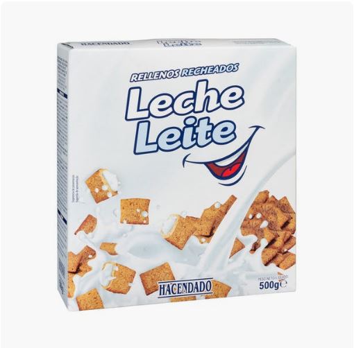 Se trata de un cereal que viene relleno de leche de la marca Hacendado. Esta presentación de 500 g quiere ganarse un espacio en la comida diaria de las familias, el sabor es increíble, la crocancia, y además la leche es 100% española. Para mayor atracción, es delicioso y no te lo querrás perder. Es bajo en sal, y contiene vitaminas y minerales calcio y también hierro. Tiene un precio chiquitín, te lo puedes llevar por tan sólo 1,89 euros.