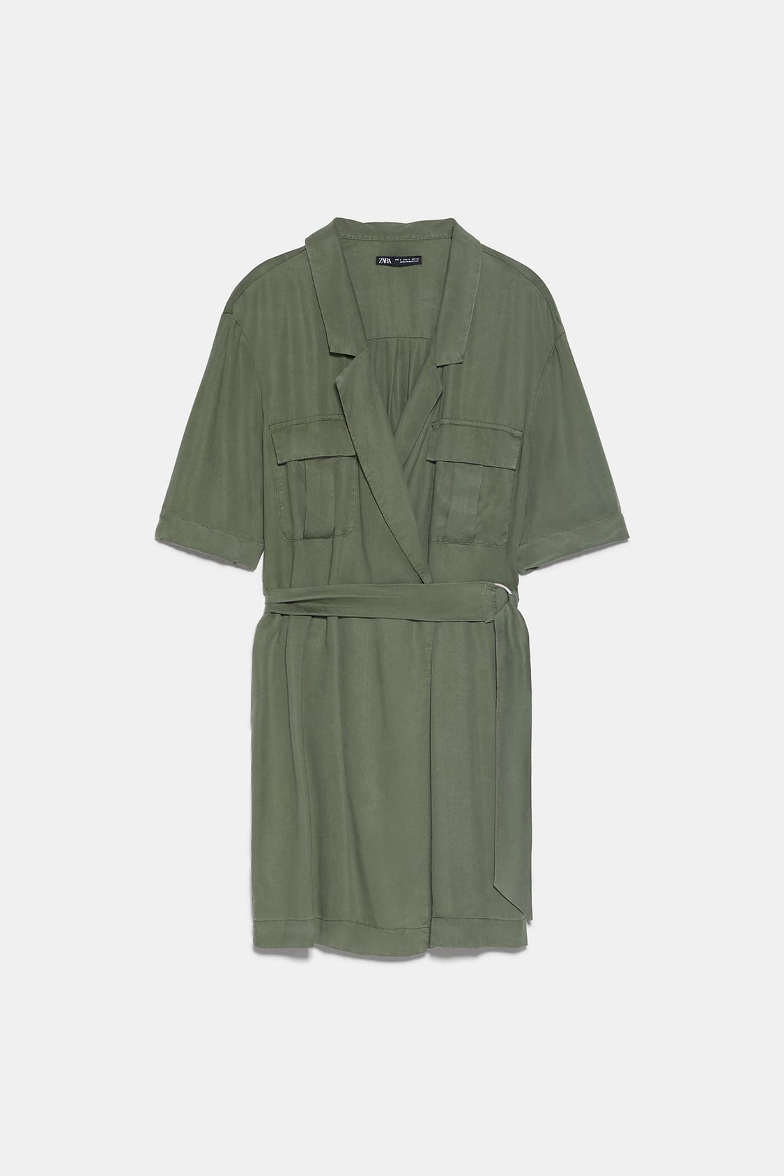 Para todas aquellas que buscan prendas todoterreno con las que arrasar durante los tres meses de verano, Zara tiene también buenas noticias. Este vestido en verde militar con una buena cantidad de bolsillos será la opción perfecta para esas mujeres ocupadas que se pasan el día de un día para otro.