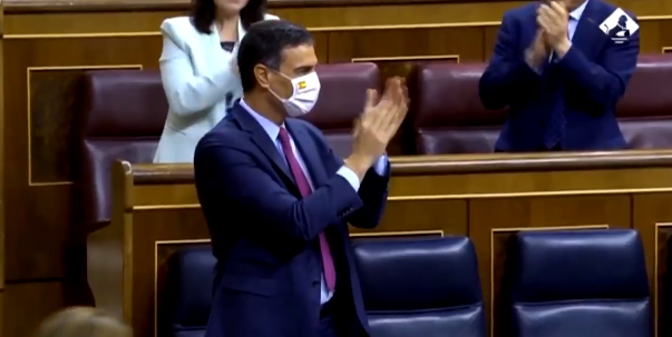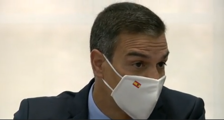 SÁNCHEZ Y SU MASCARILLA CON LA BANDERA DE ESPAÑA