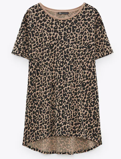 Volvemos a los básicos pero esta vez con un corte un poco diferente, ya que tiene el bajo asimétrico, con la parte de atrás un poco más larga que la delantera. Es ideal para llevar por encima de unos pantalones o un vestido o falda larga, cuando nos apetece un outfit cómodo y holgado. Es de manga corta y de cuello redondo. Está disponible en 7 colores y estampados distintos, pero nosotros hemos elegido la de leopardo por ser la más atrevida. Si te animas, prueba a llevarla con unos skinny jeans negros y conseguirás un look llamativo y elegante a la vez. Está fabricada con algodón orgánico al 100% y cuesta 5,95 euros.