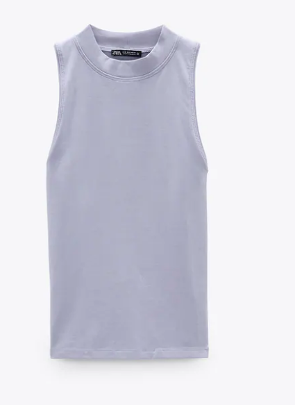 El cuello Perkins lleva ya varias temporadas de moda, y se caracteriza por no ser totalmente cuello alto, pero tampoco el típico cuello redondo. ¿Sabes que su nombre se debe al actor Anthony Perkins? Si te fijas, en la famosa película Psicosis, el protagonista Norman Bates viste todo el rato jerseys con este tipo de cuello. Tiene la ventaja de que se puede llevar en verano sin que nos agobie, y sientan muy bien si tienes un cuello más bien largo. La versión de Zara es súper sencilla, con manga sisa y disponible en colores lisos: blanco, negro, marrón y celeste. Anímate a usarla por debajo de una americana ligera. Está fabricada con un 95% de algodón orgánica y tiene un precio de 7,95 euros.