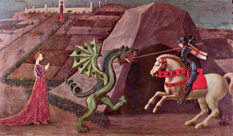 Estos organizaron una especie de sorteo entre todos los pobladores. Luego de esto, la elegida para el mencionado banquete de este dragón fue una princesa llamada Cleodolinda, pero justo antes cuando iba a ser devorada por el dragón, Sant Jordi acabó con la vida de esa bestia salvaje cortándole la cabeza, y los presentes quedaron atónitos.