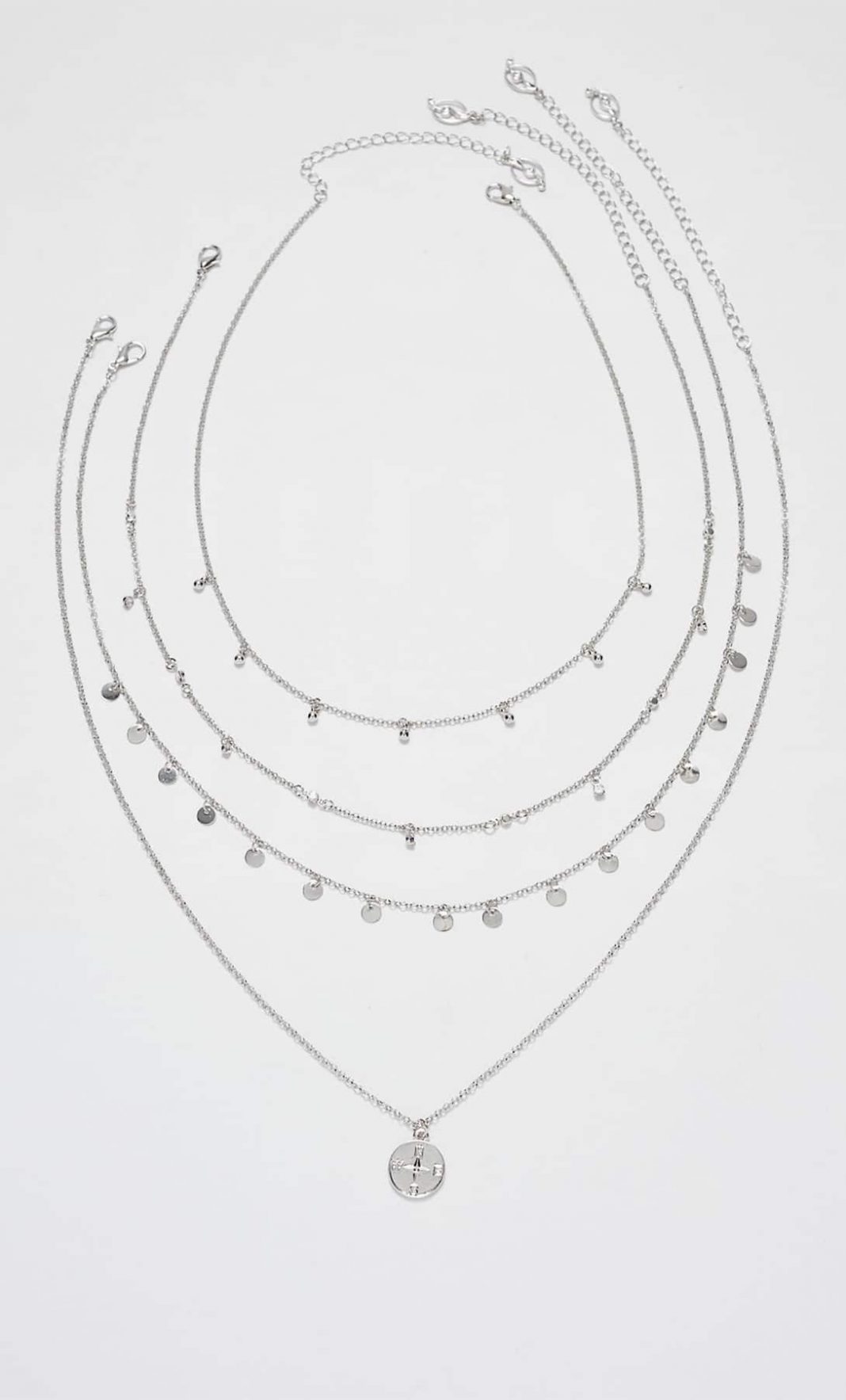Este set es de 4 collares STR con monedas y cristales. Vendría bien que lo combines con un vestido corto, y que pueda venir con tirantes, o quizás una abertura en el pecho. La idea es que muestres siempre los accesorios, visten mucho, y puedes notar la diferencia, cuando lo incluyes o no. Siempre es bueno que tengas algo para sumar, y por 7,99 euros, es algo que merece la pena.