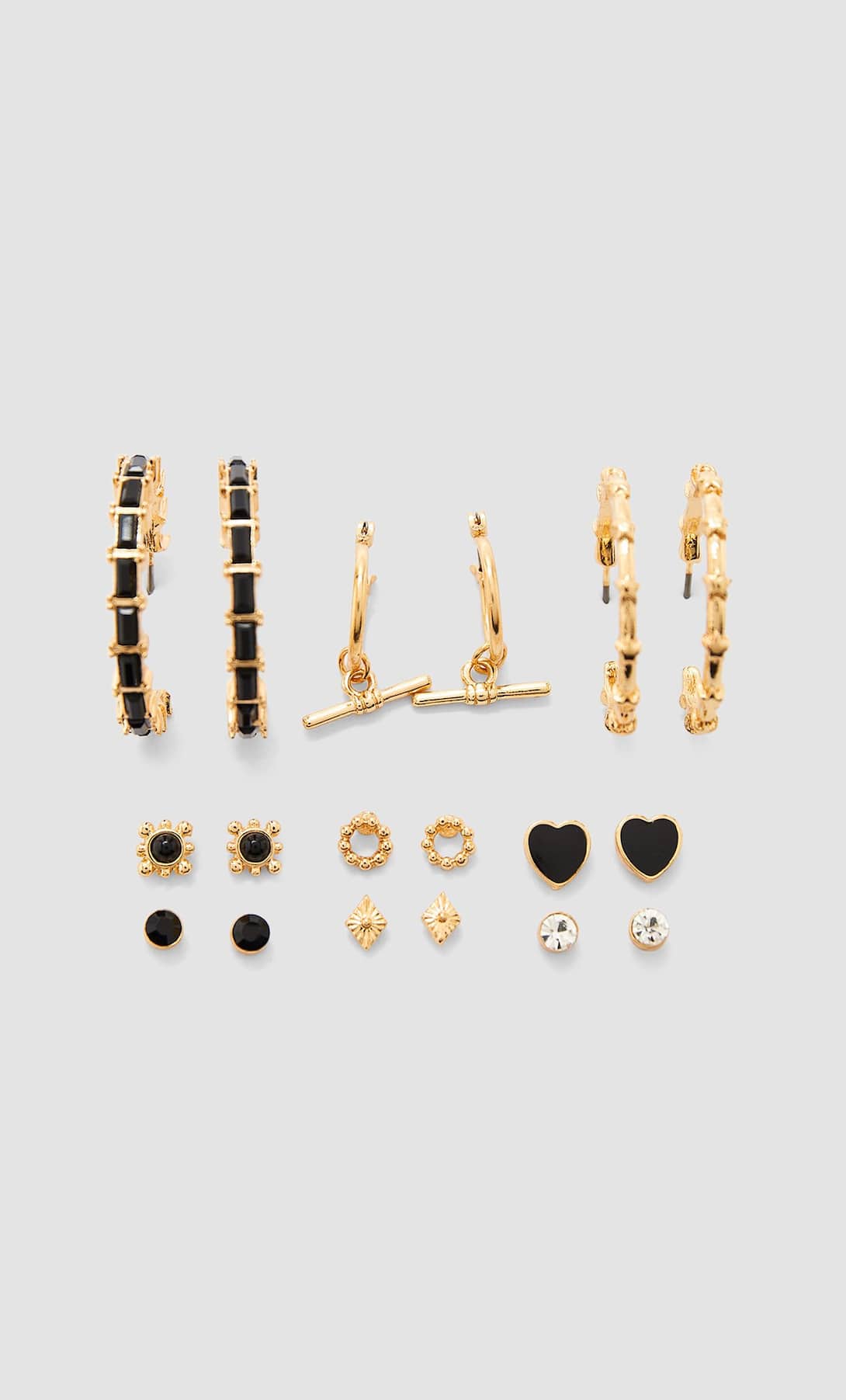 En cambio, otro grupo que se apuntan a otras marcas que aseguran ser originales y las mejores, pagan muchos euros, y al final no le quedan bien. Con Stradivarius vas a lograr verte bien, con bisutería que desde el primer momento que la veas y te la pongas las personas pensarán que son caras, y no es así. Te traemos estos pendientes aros y corazón que viene en set 9.