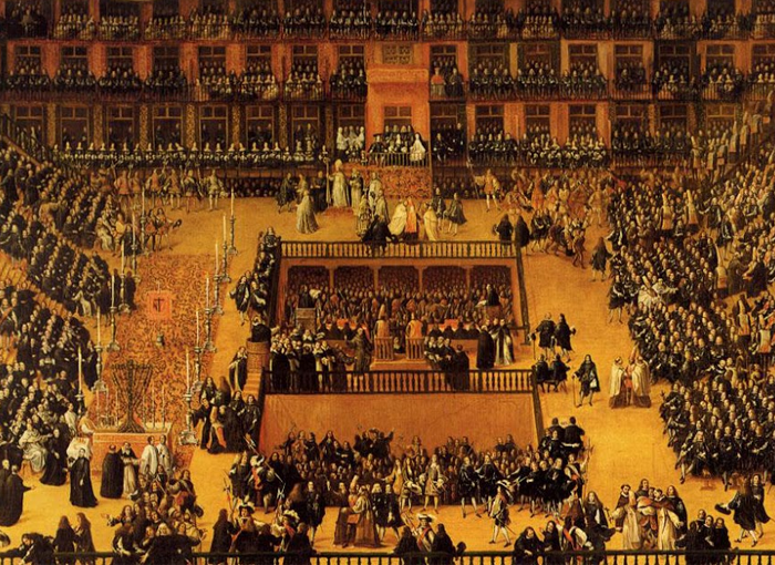La Plaza Mayor de Madrid fue el último destino de miles de personas que fueron condenadas por parte de la Inquisición en Madrid. De camino a lo que iba a suponer su muerte segura, transitaban entre una plaza llena de espectadores que disfrutaban el sufrimiento asociado a los castigos por herejía.