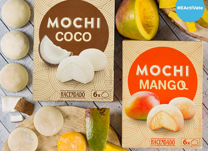 Una de las últimas novedades en llegar a las tiendas de Mercadona son los helados de Hacendado Mochi de Mango y Coco. El mochi es un dulce de origen japones que está elaborado con una basa blanda de arroz, con relleno de helado y espolvoreado de almidón.