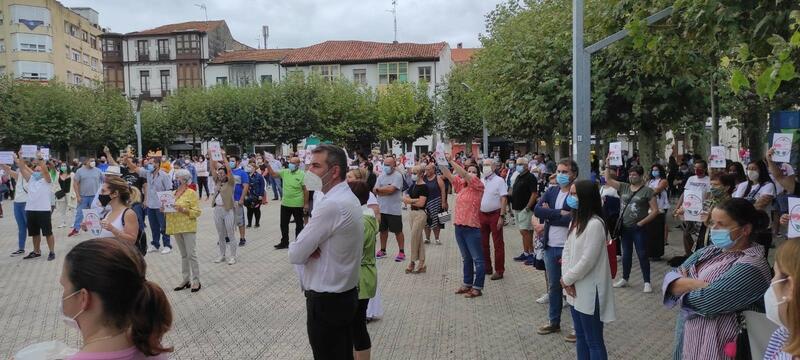 Cientos de vecinos de Santoña se han concentrado este domingo en la plaza de San Antonio para mostrar su apoyo a los equipos directivos de los centros educativos de la villa y exigir al Gobierno de Cantabria que retrase el inicio del curso escolar hasta que se levante el cordón sanitario impuesto esta semana en el municipio.