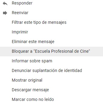Vale destacar que dentro de ese grupo de opciones vas a ver reflejada una que lleva por nombre «bloquear», y esta es la que te ayudará a eliminar a tal persona para que no siga enviándote correos.