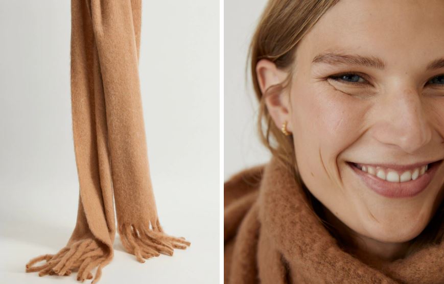 Las bufandas también forman parte esta lista de encanto, con los accesorios más imponentes de Mango para esta nueva temporada. En este caso, se trata de una imponente bufanda lana con flecos que viene en color marrón medio. Tiene un precio de 25,99 euros. Hay color amarillo pastel y verde agua, así que tienes más opciones para elegir. Como detalle a considerar, te decimos que su tejido es con lana y cálido extrasuave, se combinan con las terminaciones con flecos para mayor atractivo.