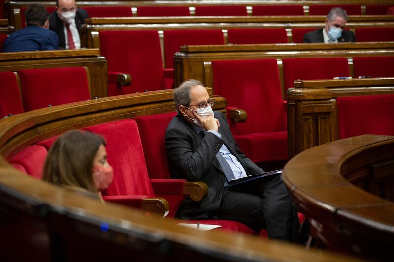 JxCat, ERC y la CUP han presentado una propuesta de resolución conjunta en la que piden que el Parlament rechace y condene la posible inhabilitación del presidente de la Generalitat, Quim Torra, por parte del Tribunal Supremo (TS).