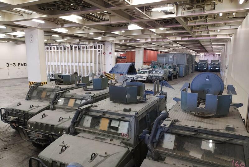 De todo el material transportado, destacan los RG-31 NYALA -vehículo para transporte de personal protegido contra minas e IED-artefacto explosivo improvisado- y el vehículo para su recuperación, VEH REC MAXPRO. Todo este material ha recibido en Zona de Operaciones un protocolo LDDD -limpieza-desinfección-desinsectación-desratización- por personal veterinario y se han precintado losembalajes.