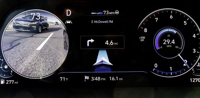 Cabe destacar que funciona como complemento al cuadro de instrumentos digital que incluye una pantalla de 12,3 pulgadas. Ayuda a mejorar la visión de quien esta conduciendo, a su vez, está conectado con el intermitente del coche.