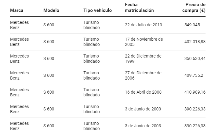 Además, pone a su disposición un total de 44 vehículos, cuyo precio de compra asciende a 4.143.423€. Estos montantes eran desconocidos hasta la fecha, pero han sido desglosados por el propio Ministerio de Hacienda.