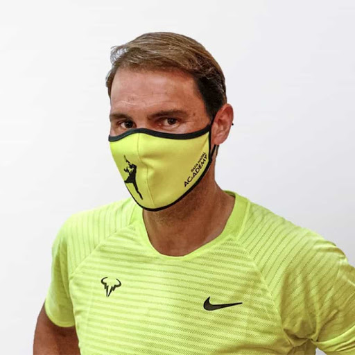 Rafa Nadal apareció por las inmediaciones de la tierra batida romana luciendo una llamativa mascarilla de color amarillo fluor y con detalles y vivo en color negro. Se trata de su silueta jugando un punto en la pista. Además, la mencionada mascarilla tiene serigrafiado el logo y el nombre de la Rafal Nadal Academy, la escuela que el mallorquín fundó en su tierra. En cuanto sus fans se percataron, las redes sociales empezaron a hacerse eco del nuevo «accesorio» del deportista. Ya había lucido la misma mascarilla antes, pero en colores más neutros.