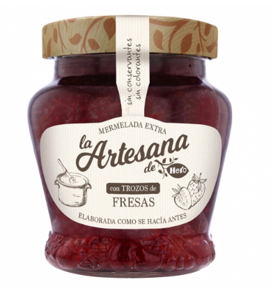 Esta que nos ofrece la marca Hero es de categoría extra porque es un producto artesano y totalmente natural que está elaborado solamente con fresa, azúcar, gelificante (pectina de cítricos) y concentrado de limón. El contenido de azúcar, evidentemente es muy elevado, por eso hay que vigilar el consumo. Es tarro cuesta 2,15 €.